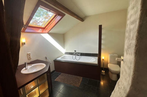 2. Badkamer met wastafel, ligbad en toilet bij de grote